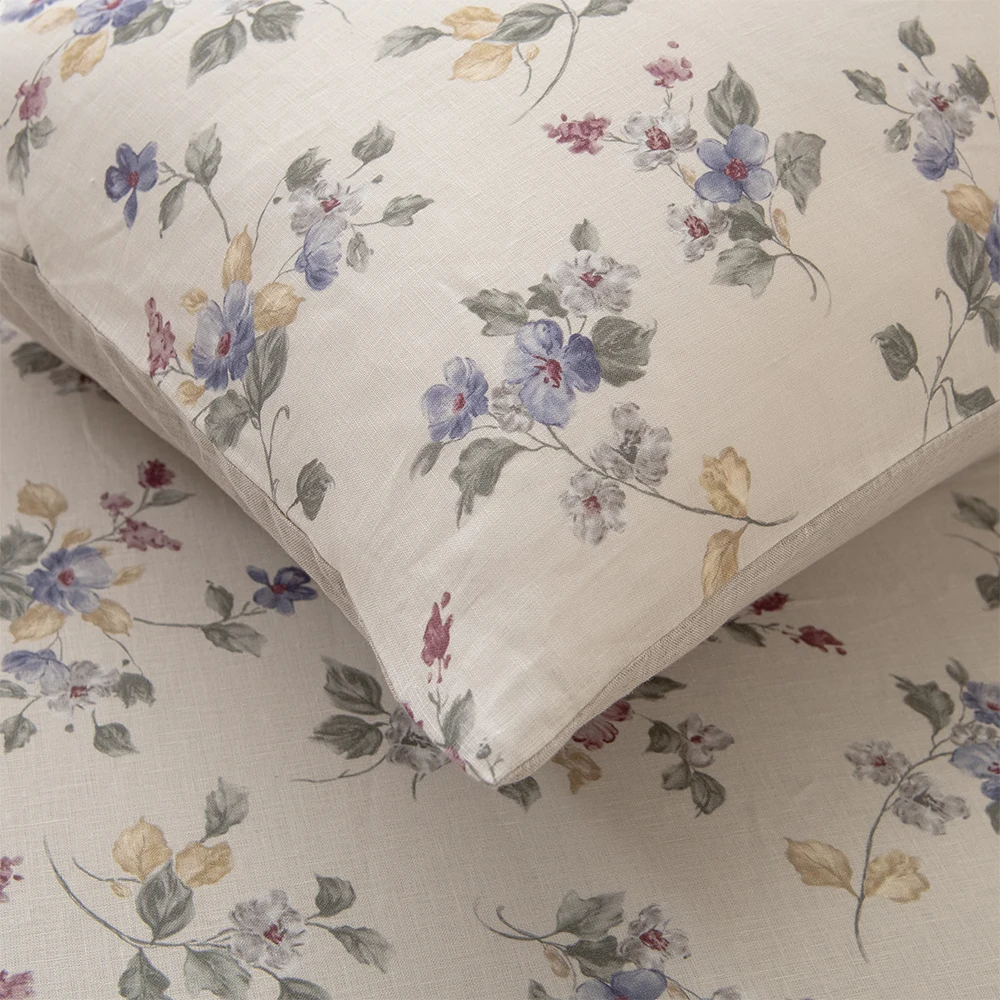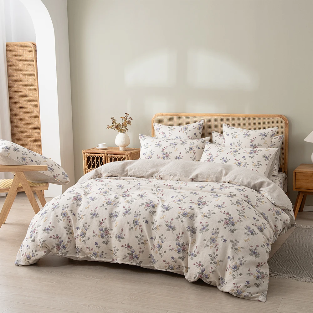 Floral 3D Digital Custom Print Linen Bed Sheet Quilt Cover Set Comfortable Bedding Set